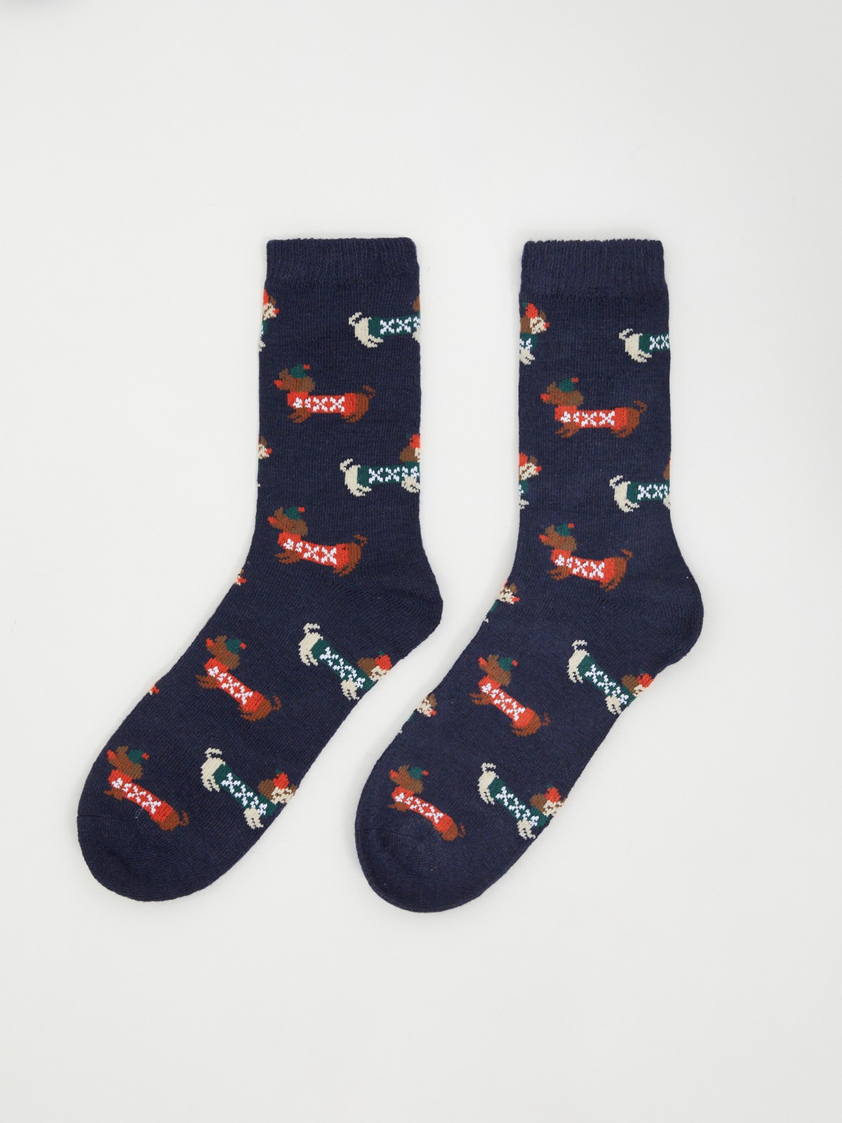 Высокие мужские носки с прикольным новогодним узором с таксами выполнены из тонкого эластичного трикотажа на основе хлопка, они хорошо тянутся и плотно прилегают к стопе, у щиколотки предусмотрена эластичная резинка для комфортной посадки. Такие носки поднимут настроение, станут идеальным выбором для празднования Нового года в кругу семьи и друзей, или отличным вариантом для веселого новогоднего подарка для коллеги, друга или родственника - парня, мужа, папы или сына.