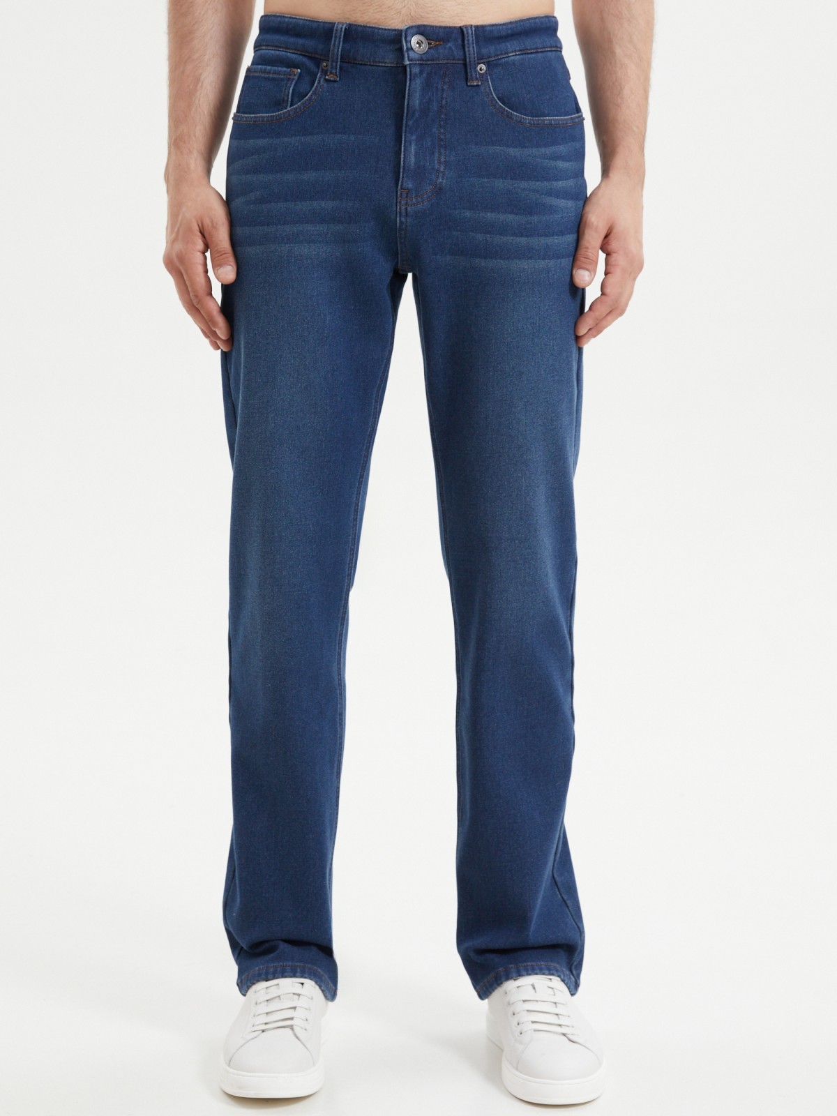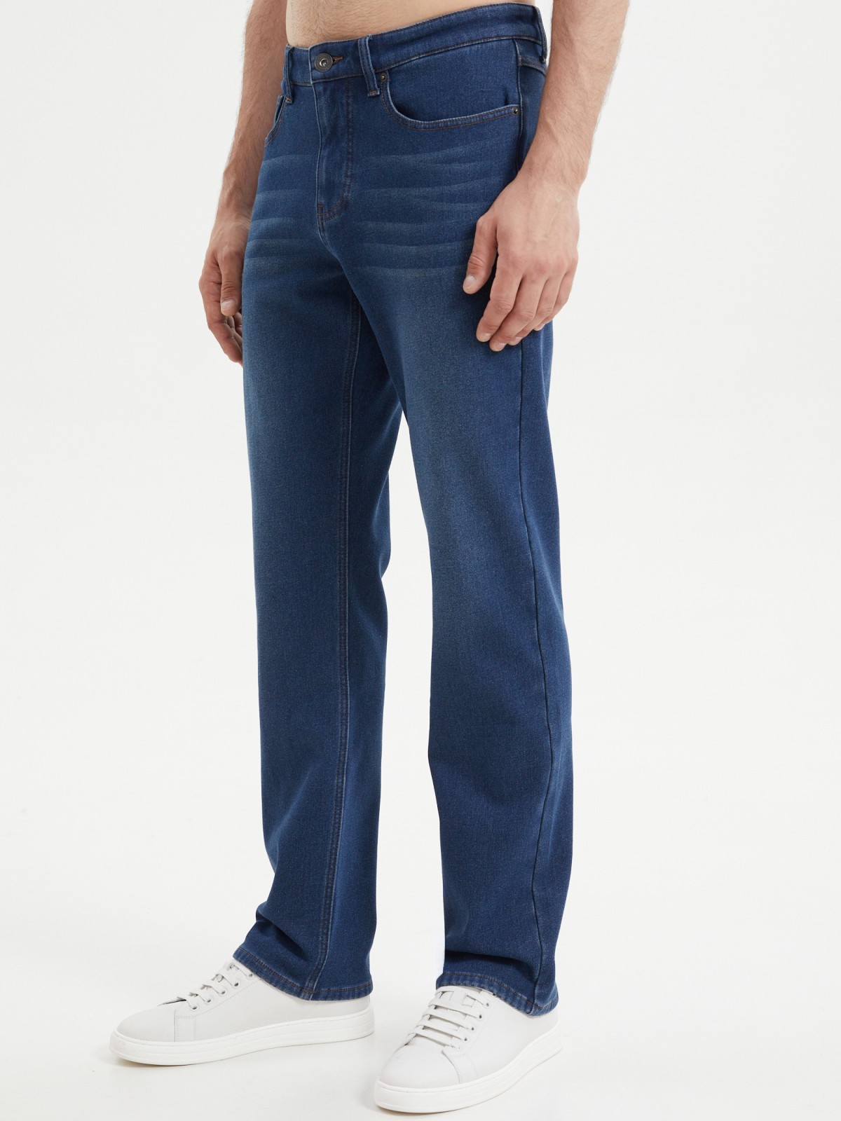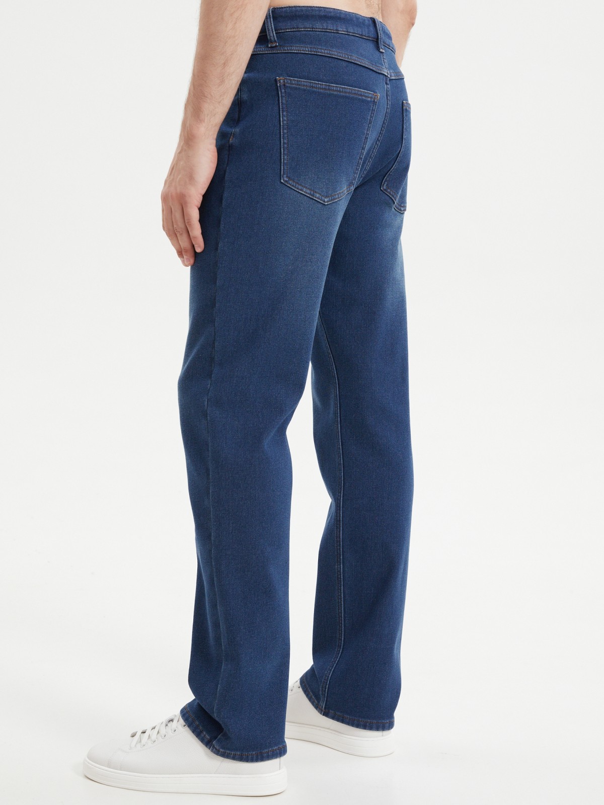 Утеплённые тёмно-синие джинсы комфортного прямого фасона, выполненные из смесового денима с тёплой флисовой подкладкой внутри, - это классика современного мужского гардероба, которая прекрасно сочетается с разным типом верха и впишется в любой повседневный образ в холодную погоду. Модель представлена в больших размерах.
