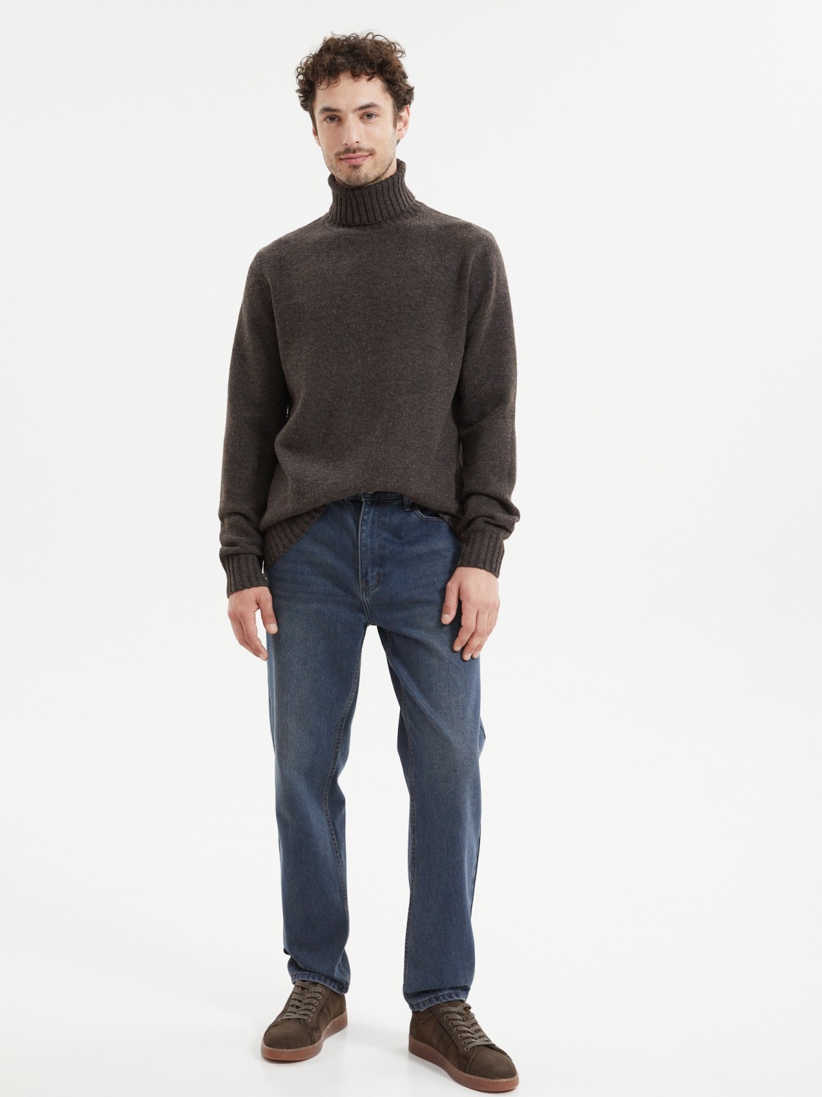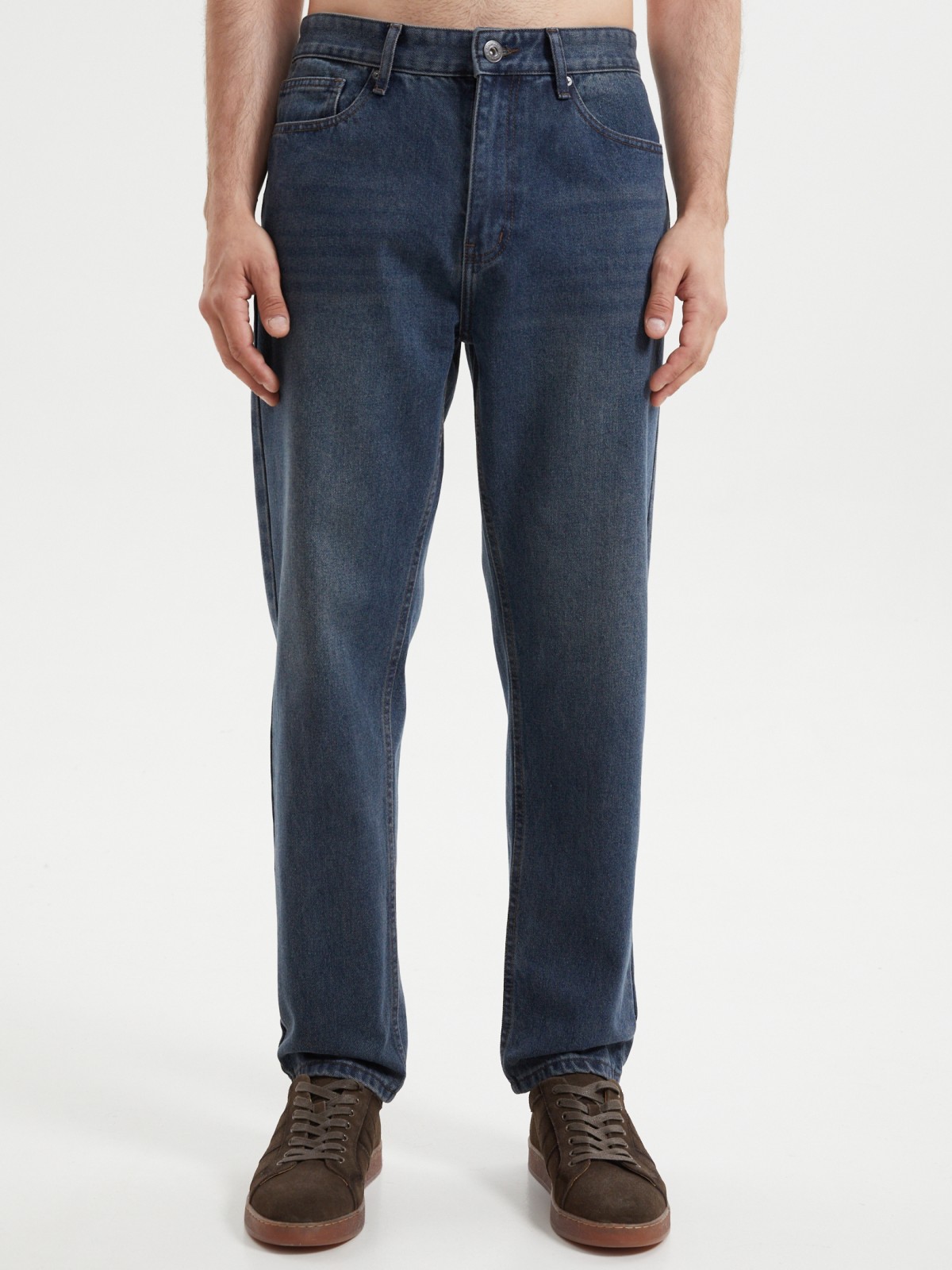 Базовые тёмно-синие джинсы комфортного слегка зауженного фасона, выполненные из эластичного смесового денима с высоким содержанием хлопка в составе, - это классика современного мужского гардероба, которая прекрасно сочетается с разным типом верха и впишется в любой повседневный образ. Модель представлена в больших размерах.