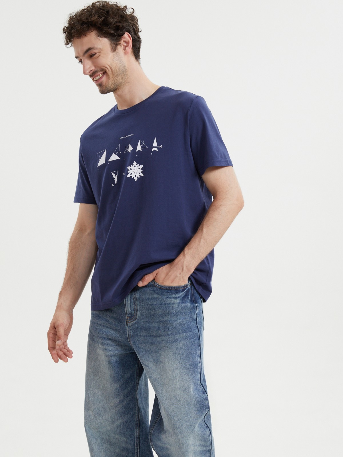 Синяя мужская футболка из дышащего хлопкового трикотажа с оригинальным новогодним принтом на груди станет идеальным выбором для празднования в кругу семьи и друзей, или отличным вариантом для весёлого новогоднего подарка для коллеги, друга или родственника. Модель представлена в больших размерах.