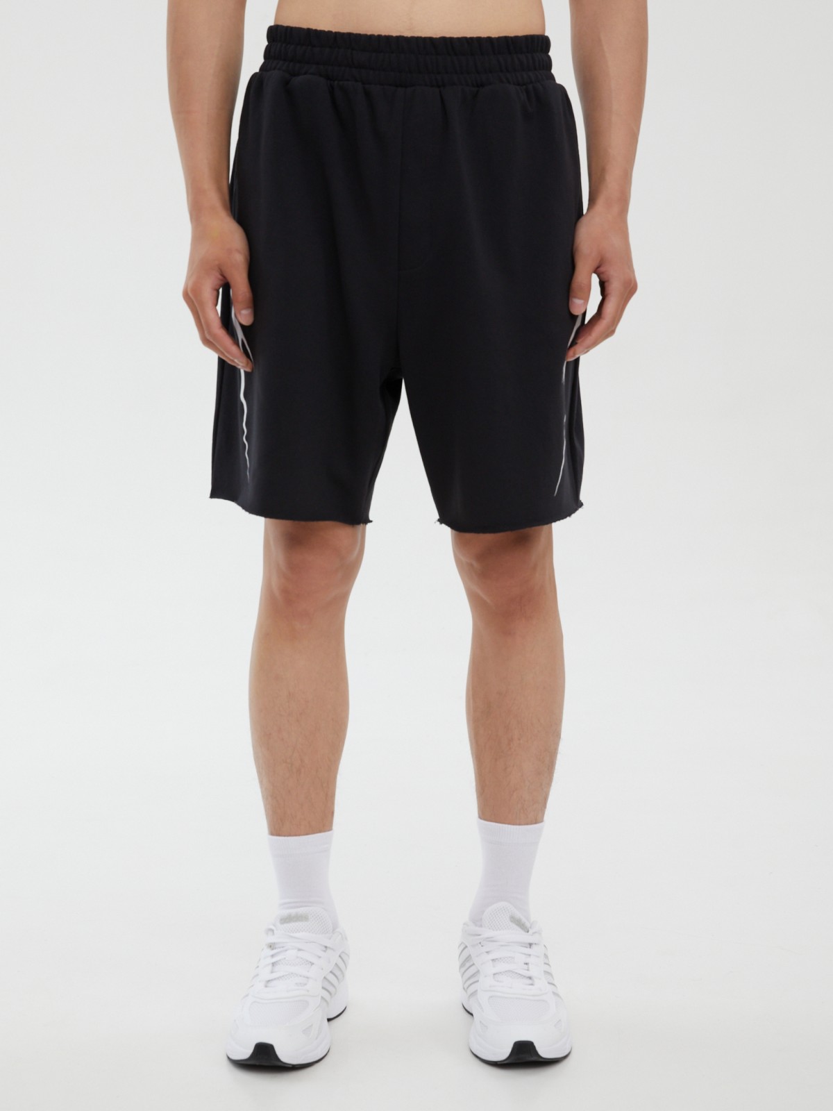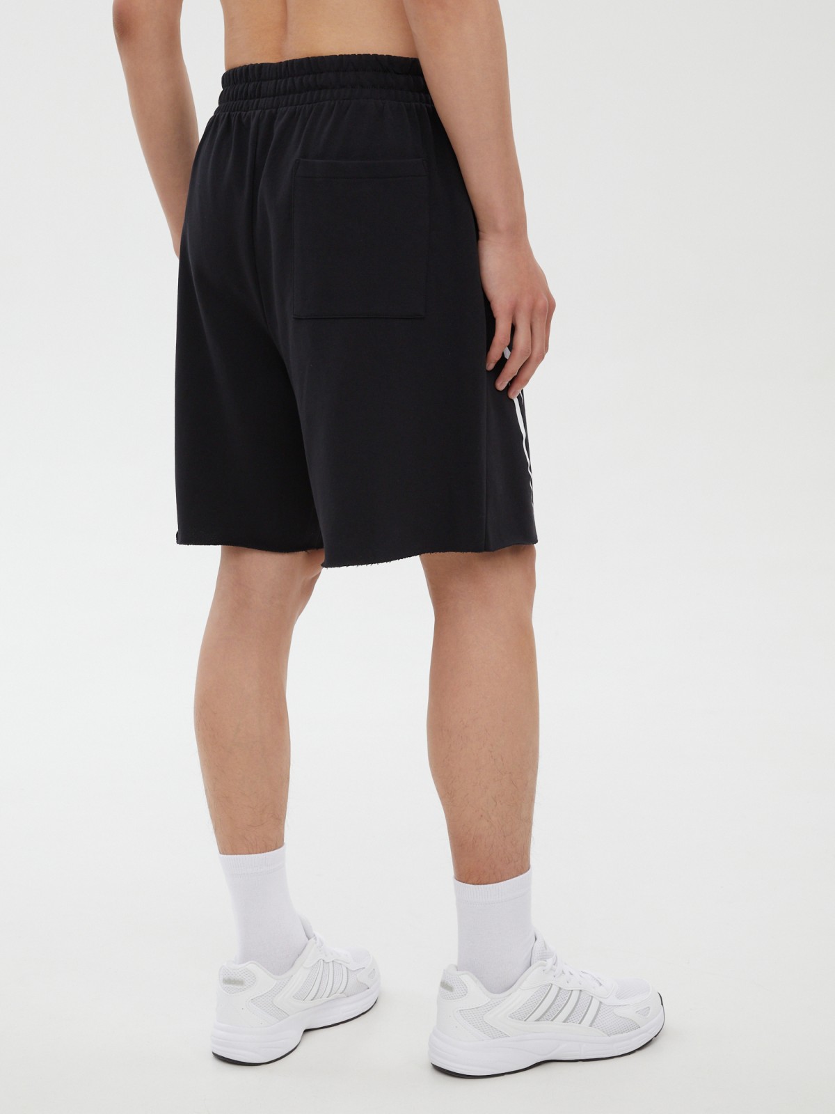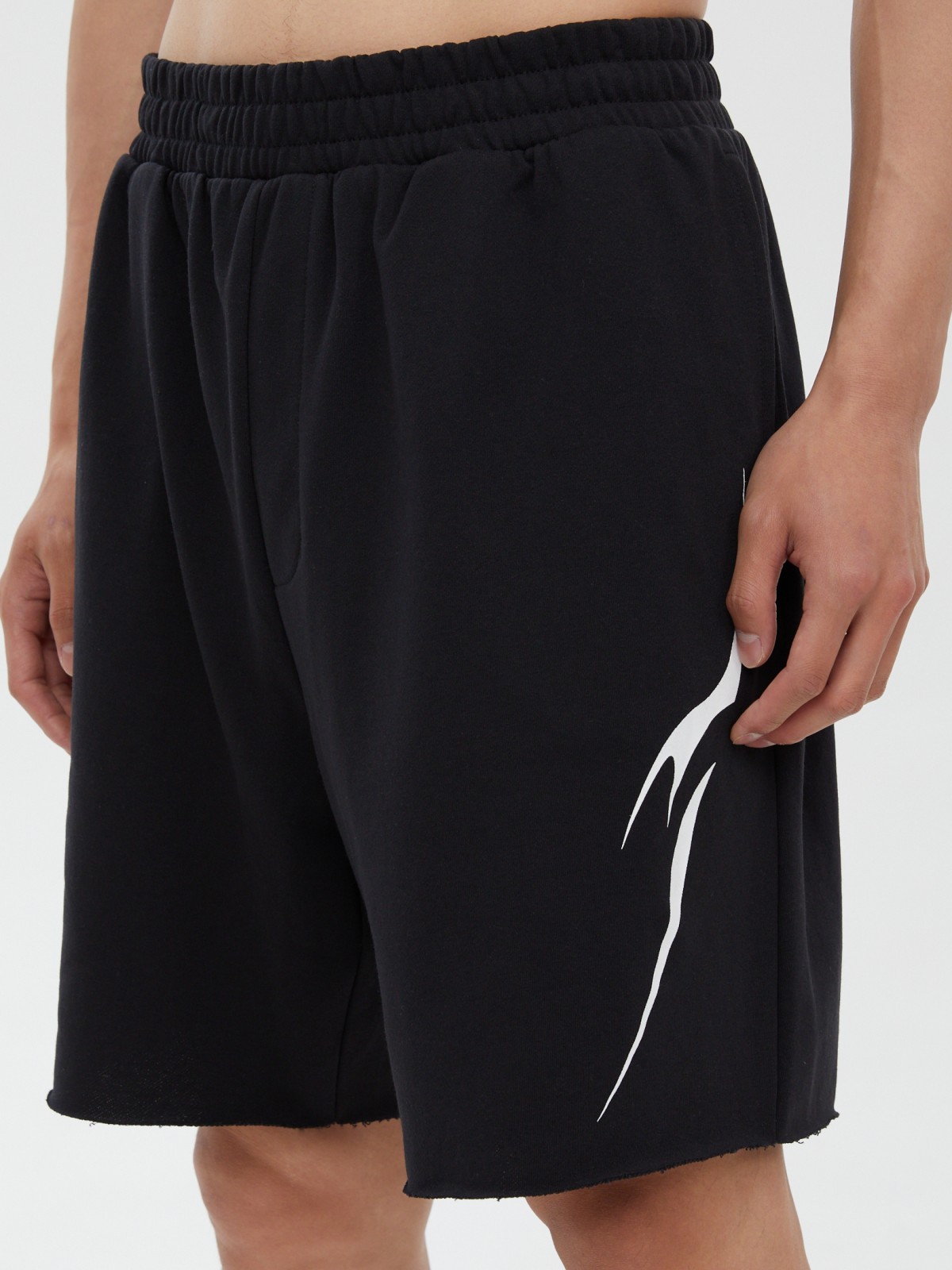 Чёрные мужские шорты из трикотажного материала с трендовым принтом - идеальная модель для комфортного повседневного или спортивного образа. Модель представлена в больших размерах.