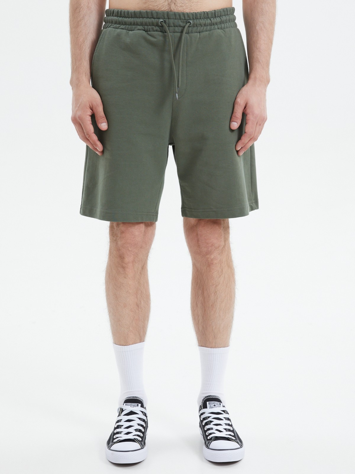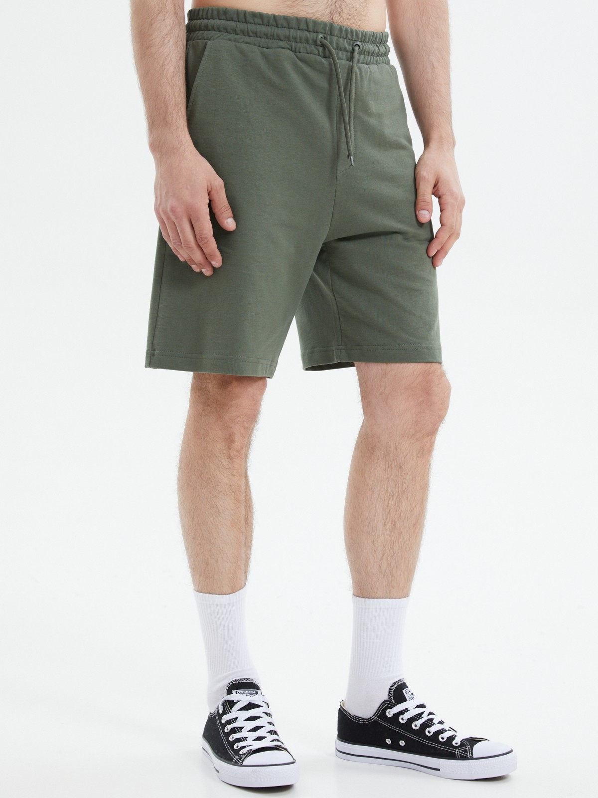Однотонные мужские трикотажные шорты из хлопкового материала в базовом дизайне - идеальная модель для комфортного повседневного или спортивного образа. Модель представлена в больших размерах.