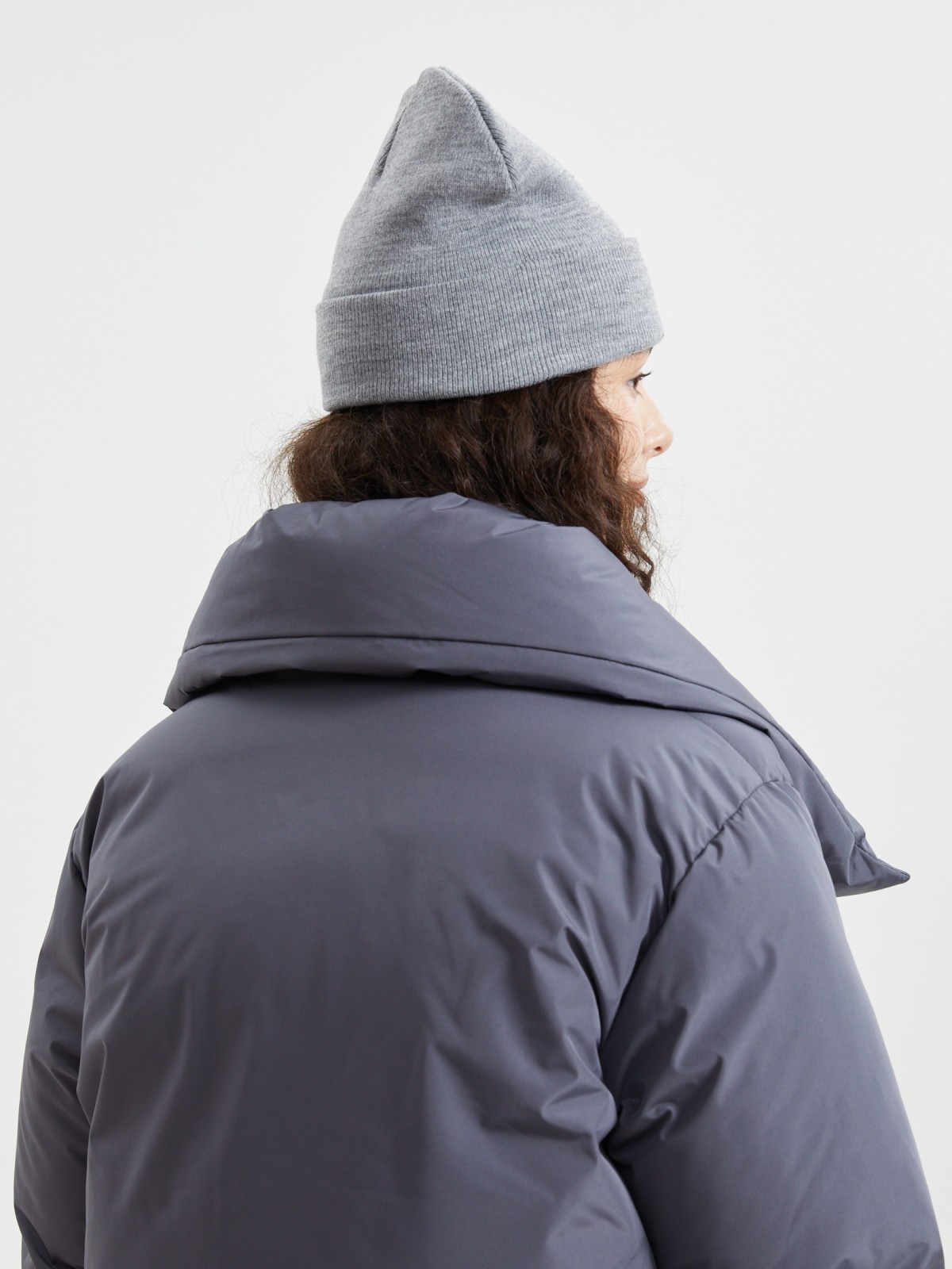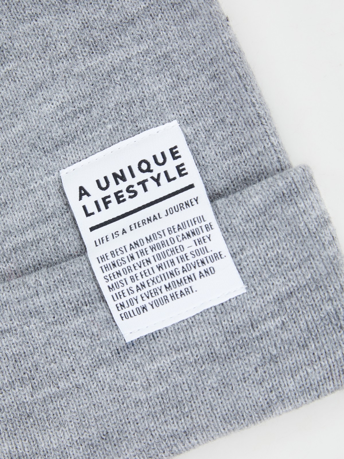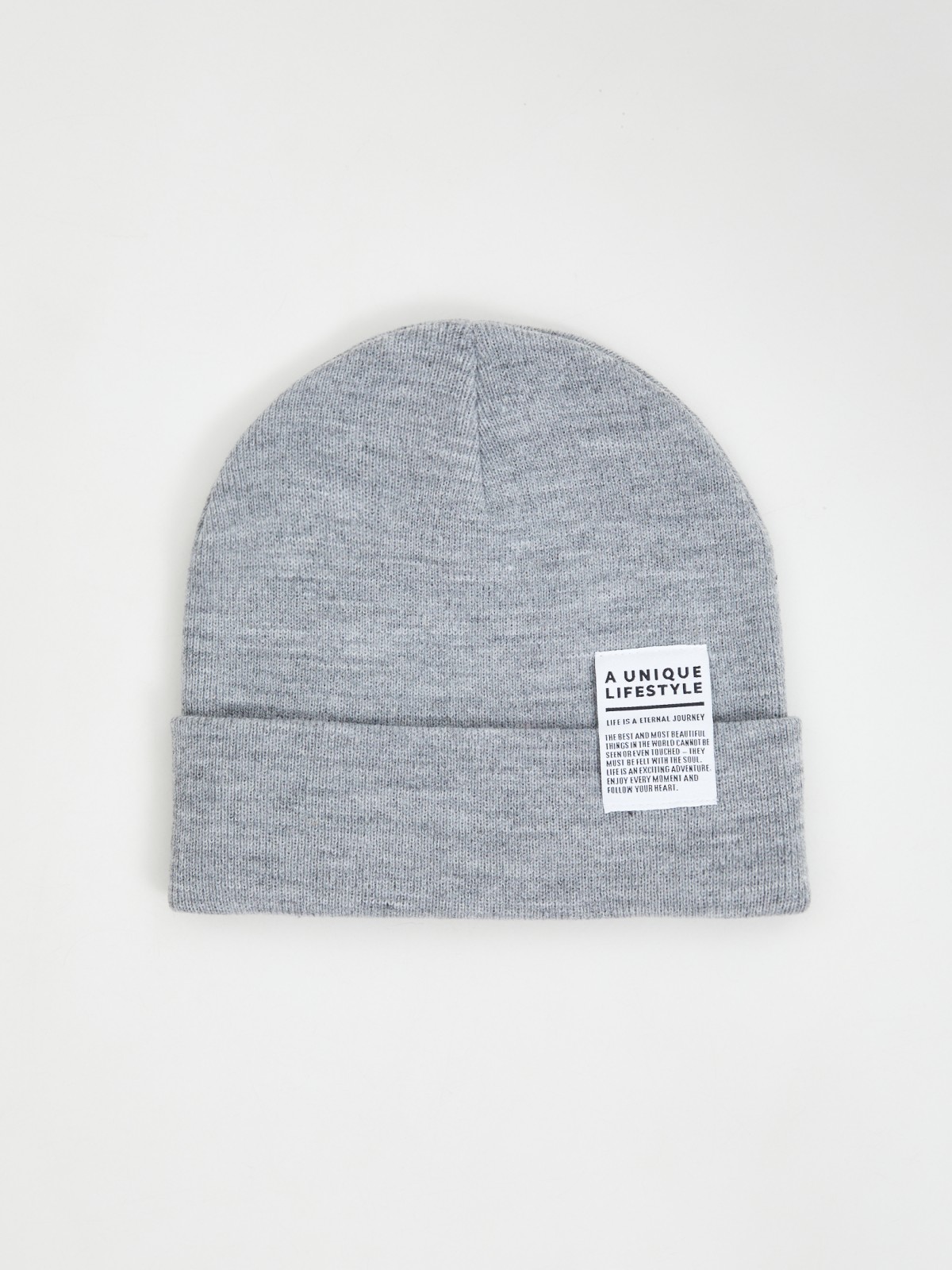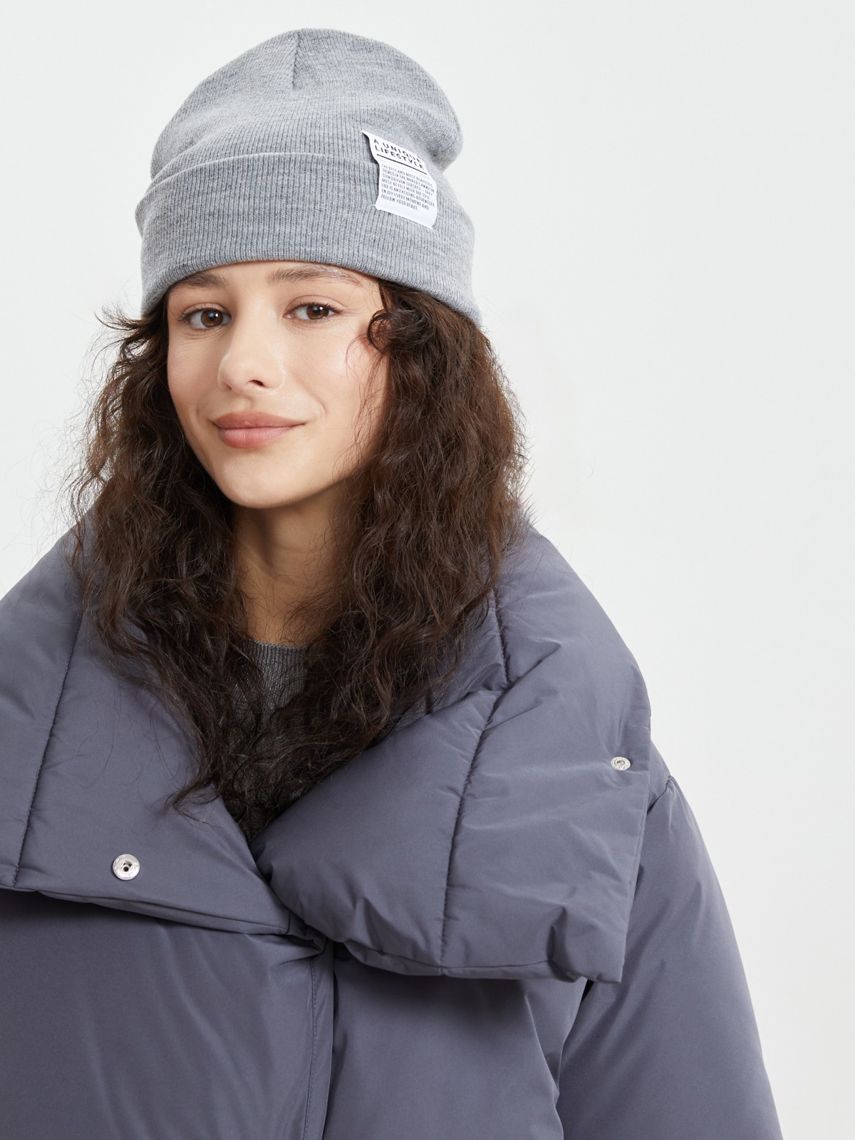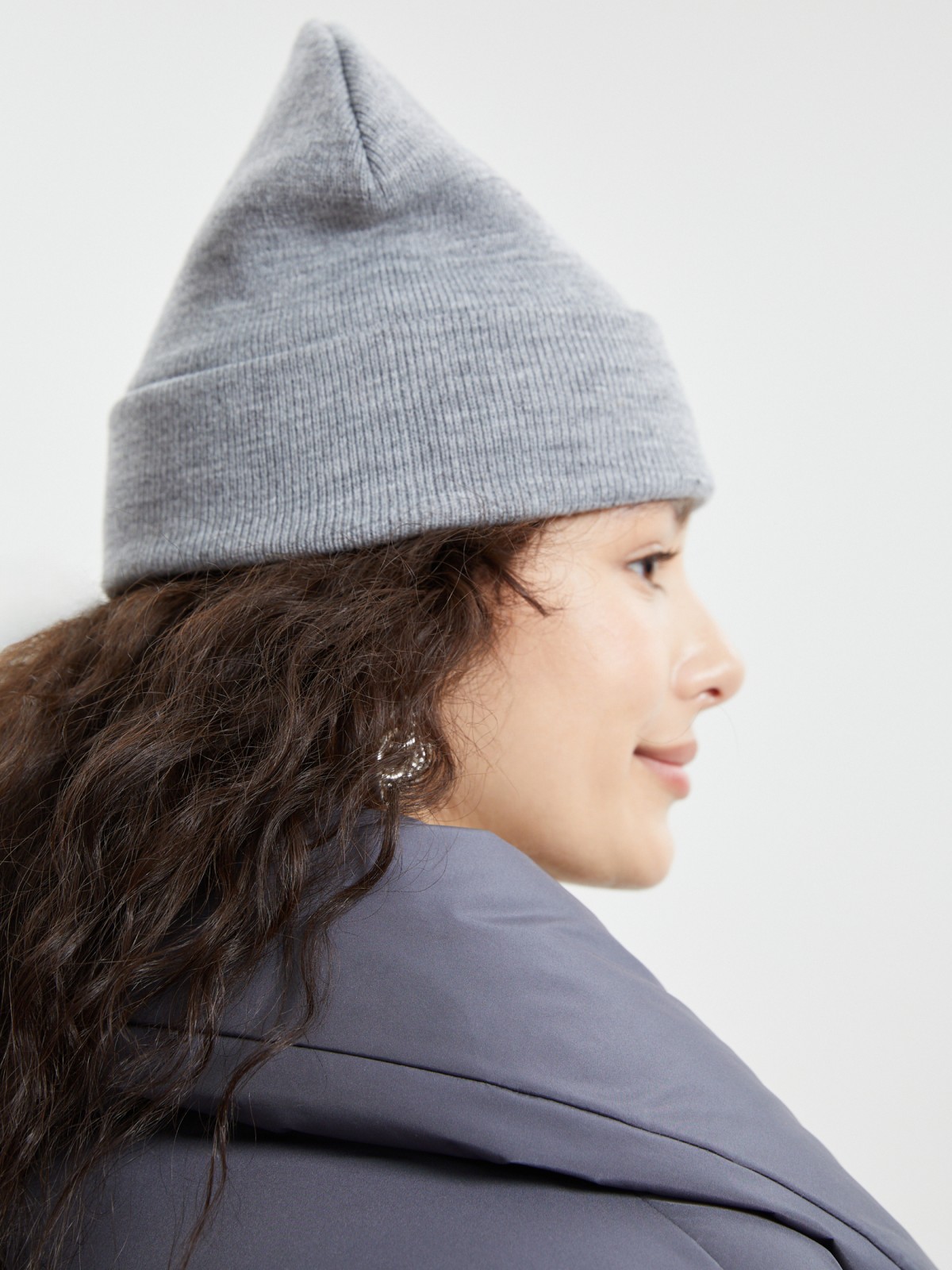 Женская шапка-бини с отворотом, выполненная из вязаного трикотажа из акрила.