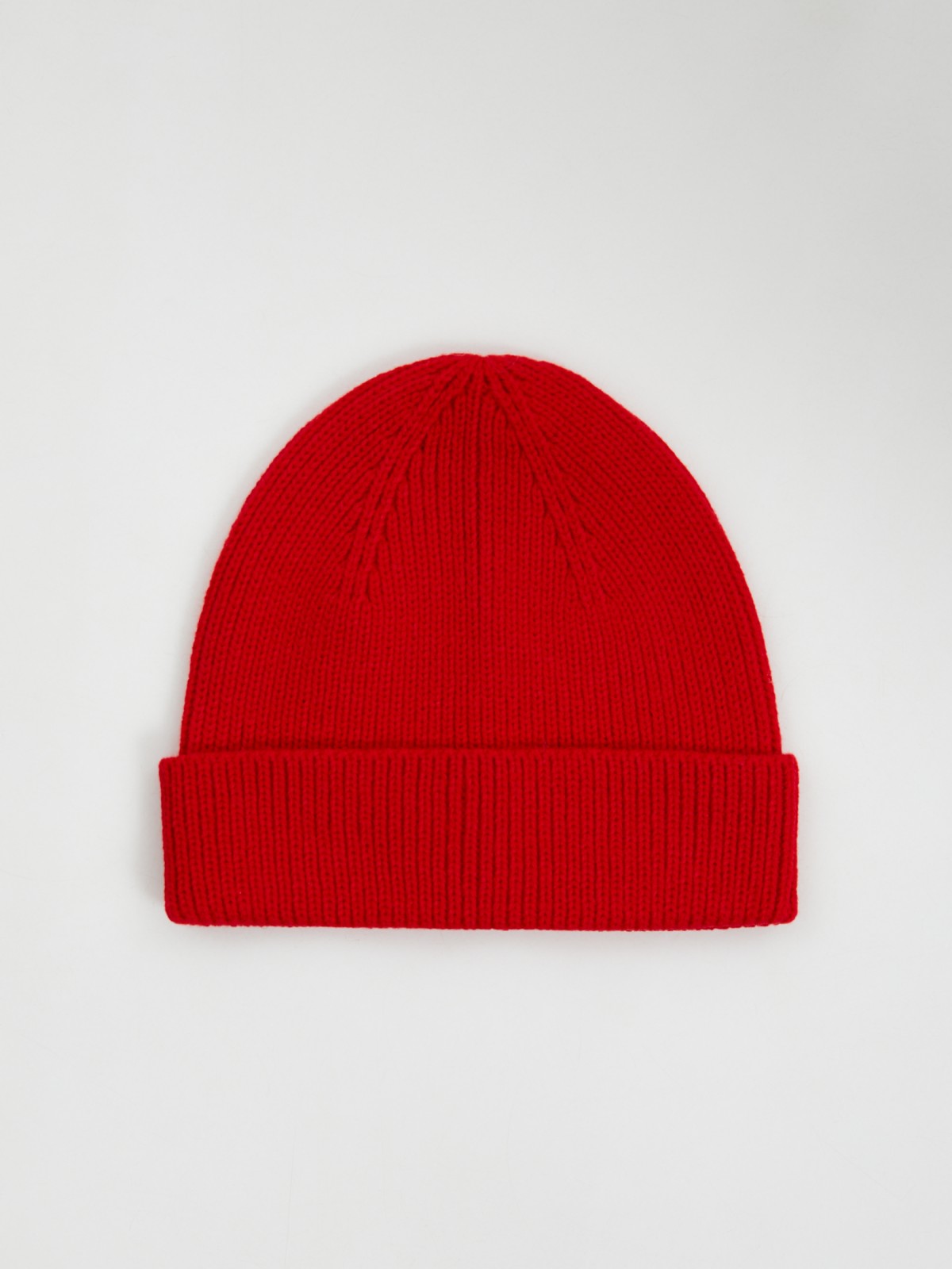 Женская вязаная шапка-бини с отворотом, выполненная из тёплой пряжи из акрила.