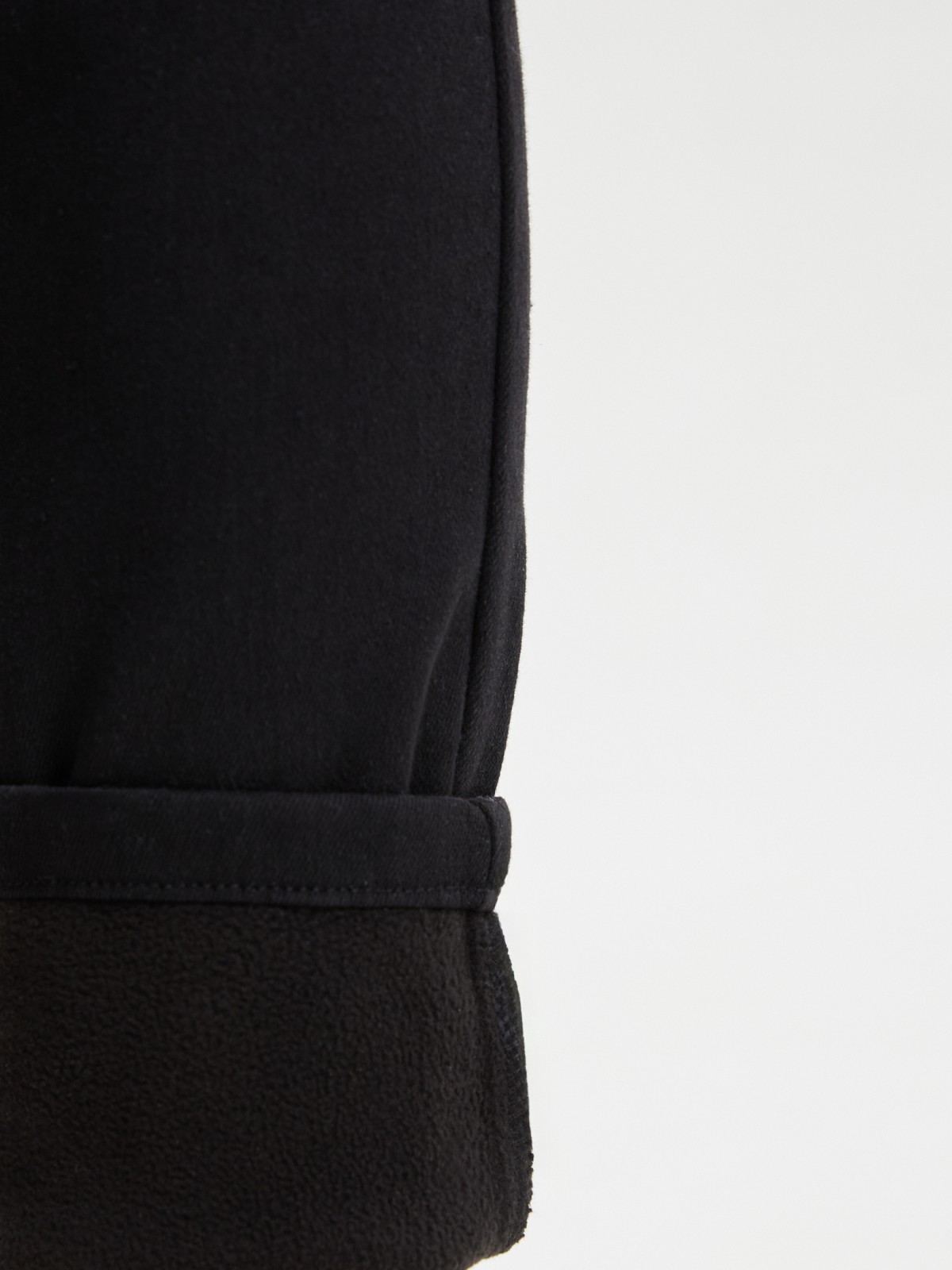 Чёрные женские джинсы скинни из эластичного стрейч-денима с тёплой флисовой подкладкой внутри стали неизменным элементом утеплённого зимнего женского гардероба. Они будут прекрасно сочетаться как с базовыми повседневными, так и с модными акцентными вещами. Модель представлена в больших размерах.