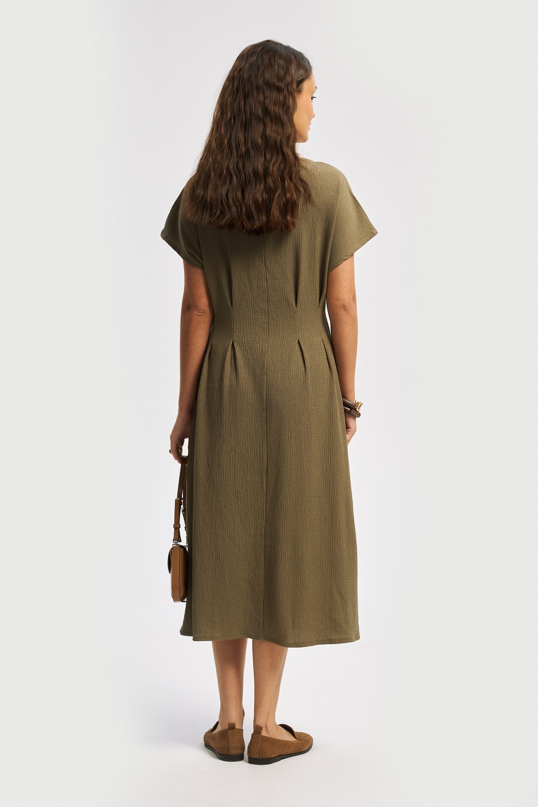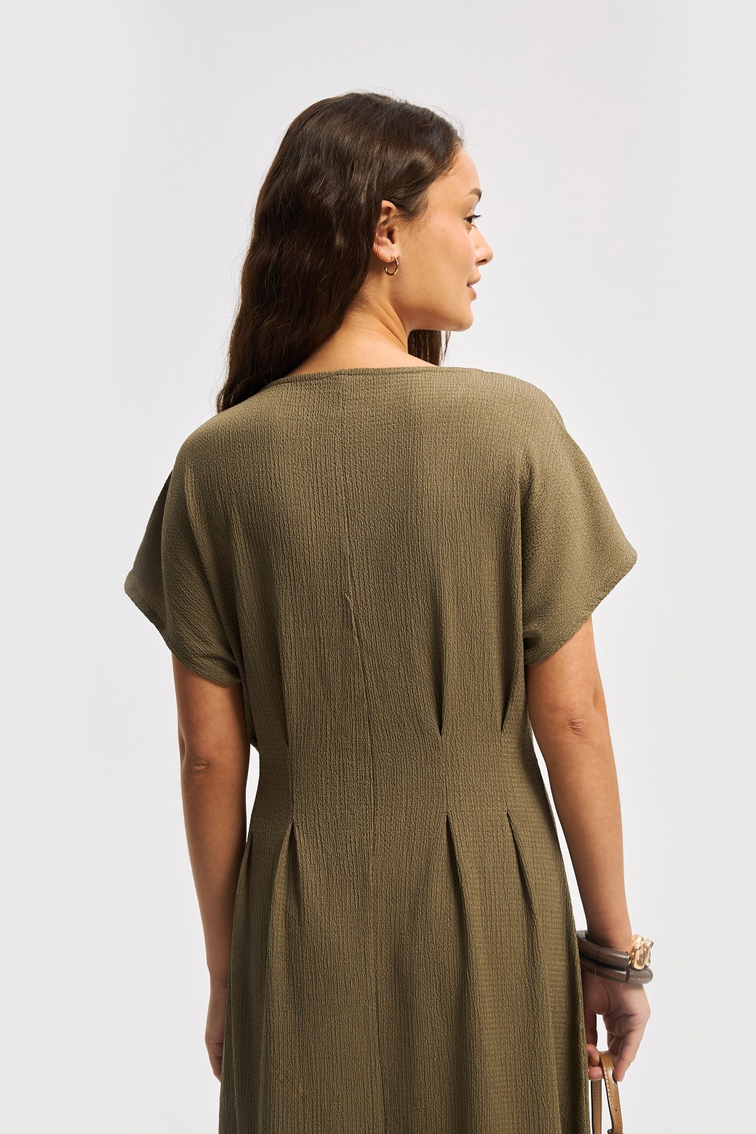 Зелёное женское платье из эластичного фактурного трикотажа идеально впишется в ваш комфортный повседневный гардероб с простыми базовыми или яркими акцентными аксессуарами. Модель представлена в больших размерах.