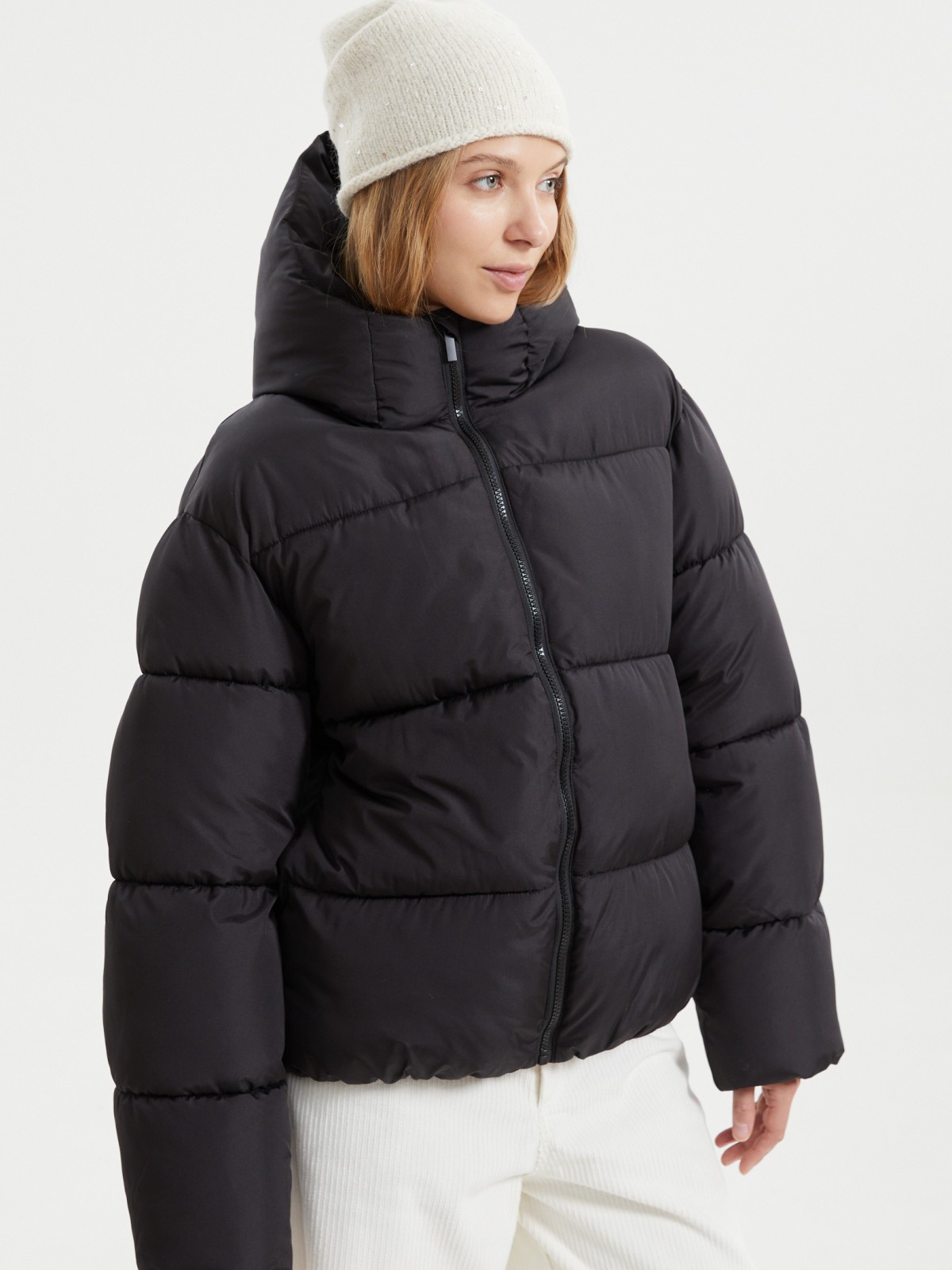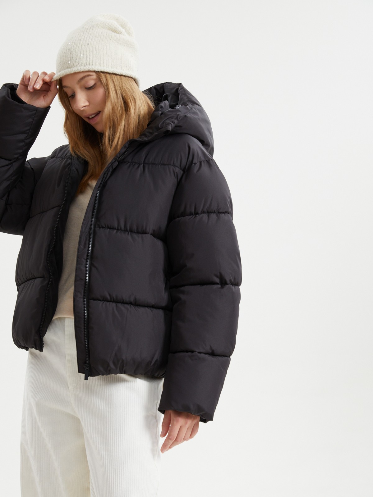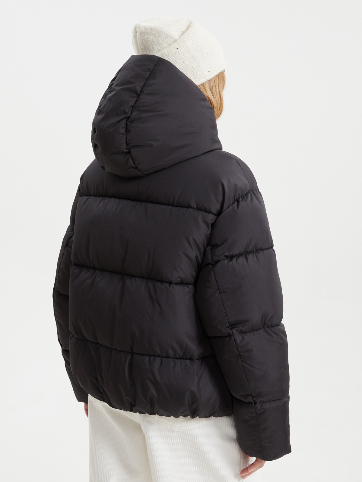 Короткая стёганая куртка с капюшоном