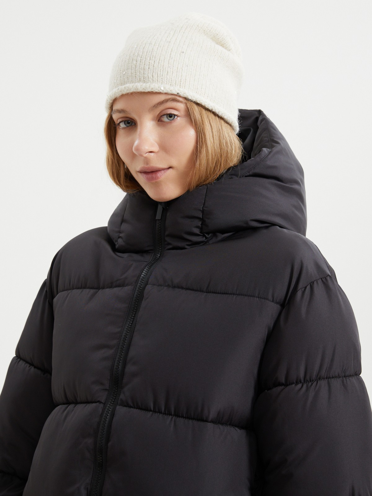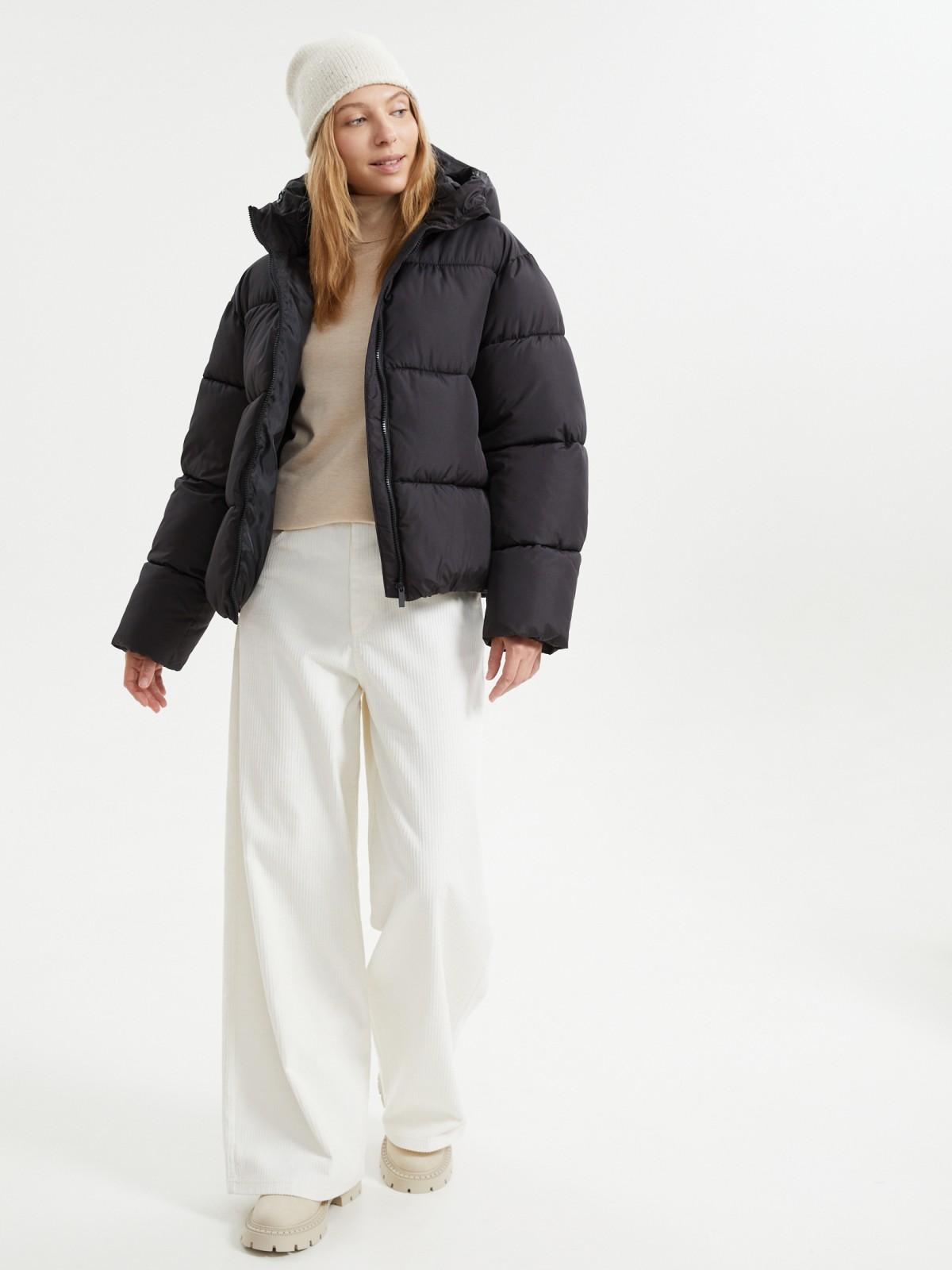 - Капюшон с высоким воротом