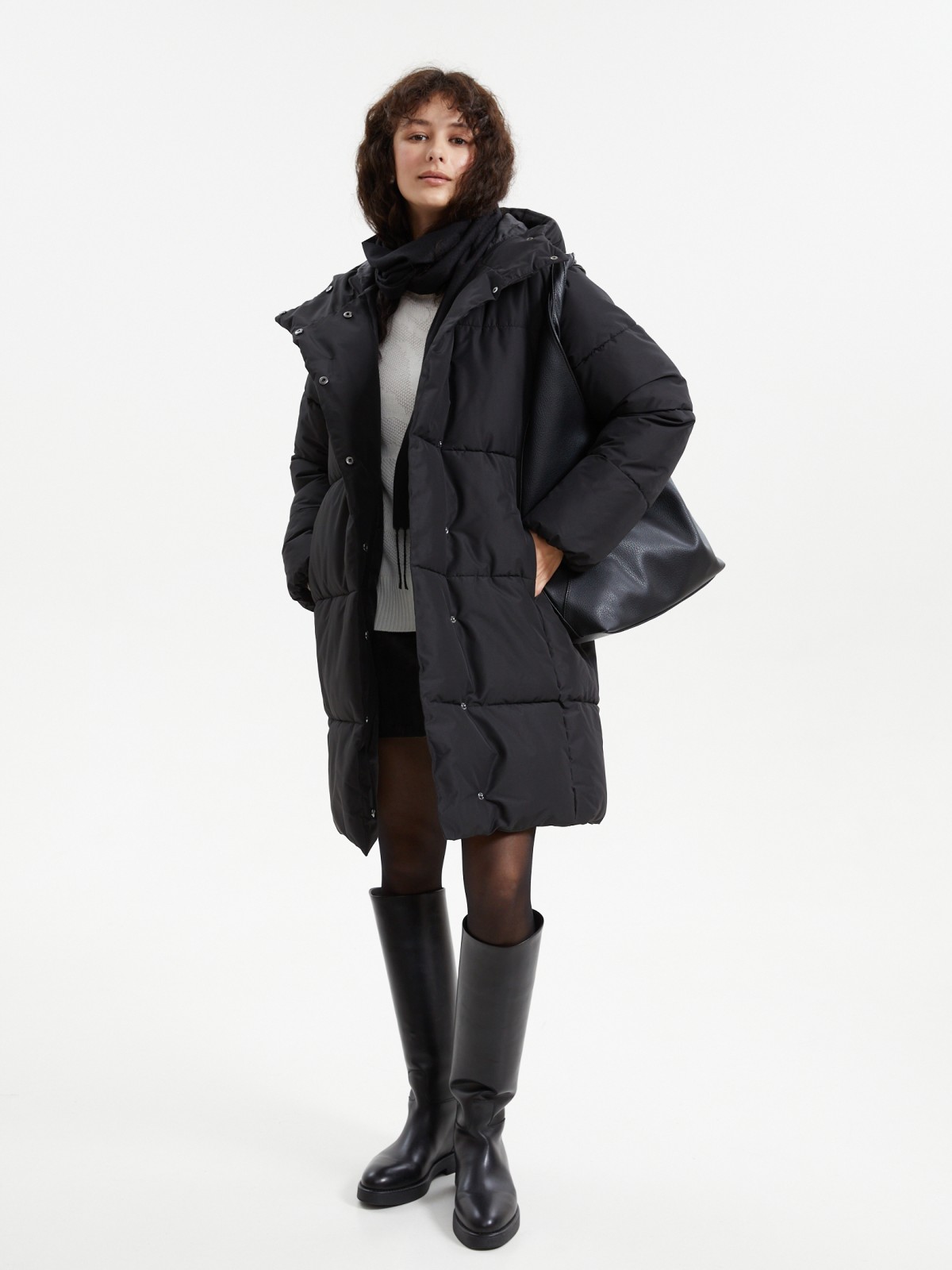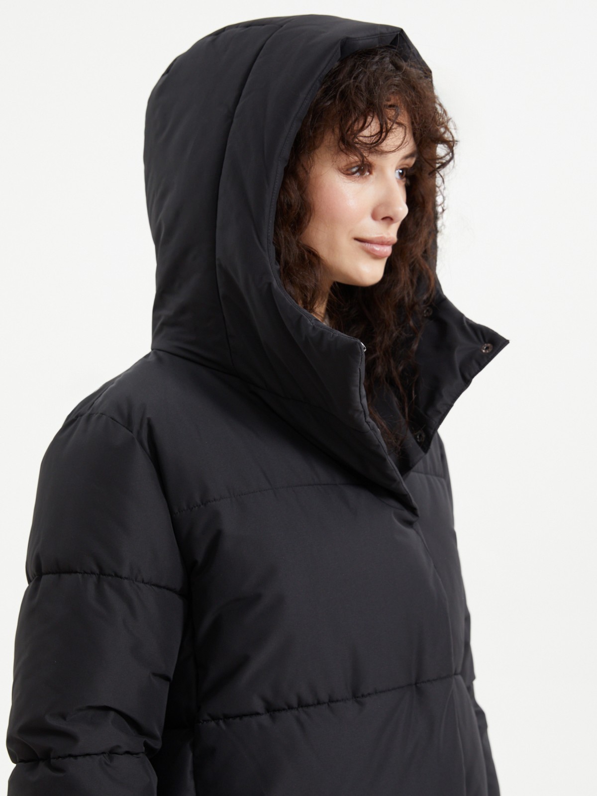 Длинное тёплое женское пальто с надёжным слоем утеплителя-синепуха будет максимально комфортным в носке в холодную погоду зимнего сезона. Модель куртки представлена в больших размерах.