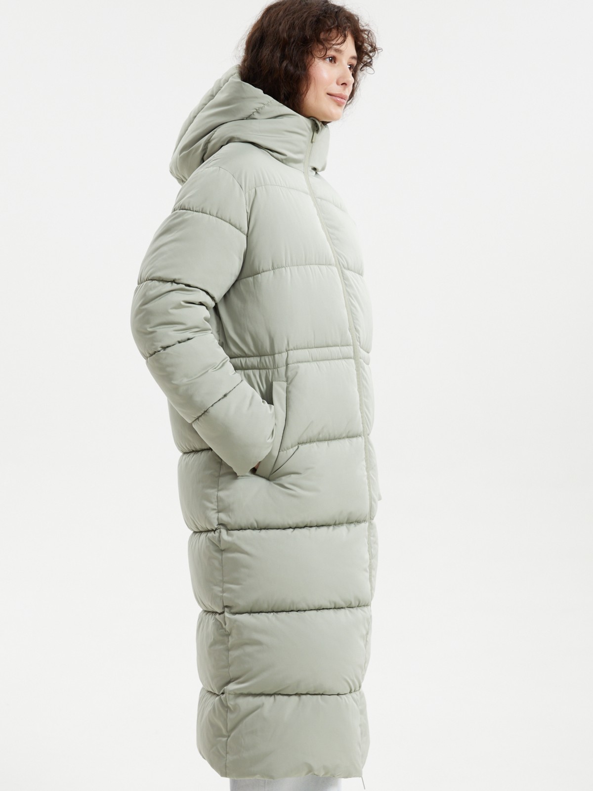 Длинное тёплое женское пальто с надёжным слоем утеплителя-синепуха будет максимально комфортным в носке в холодную погоду зимнего сезона. Модель куртки представлена в больших размерах.