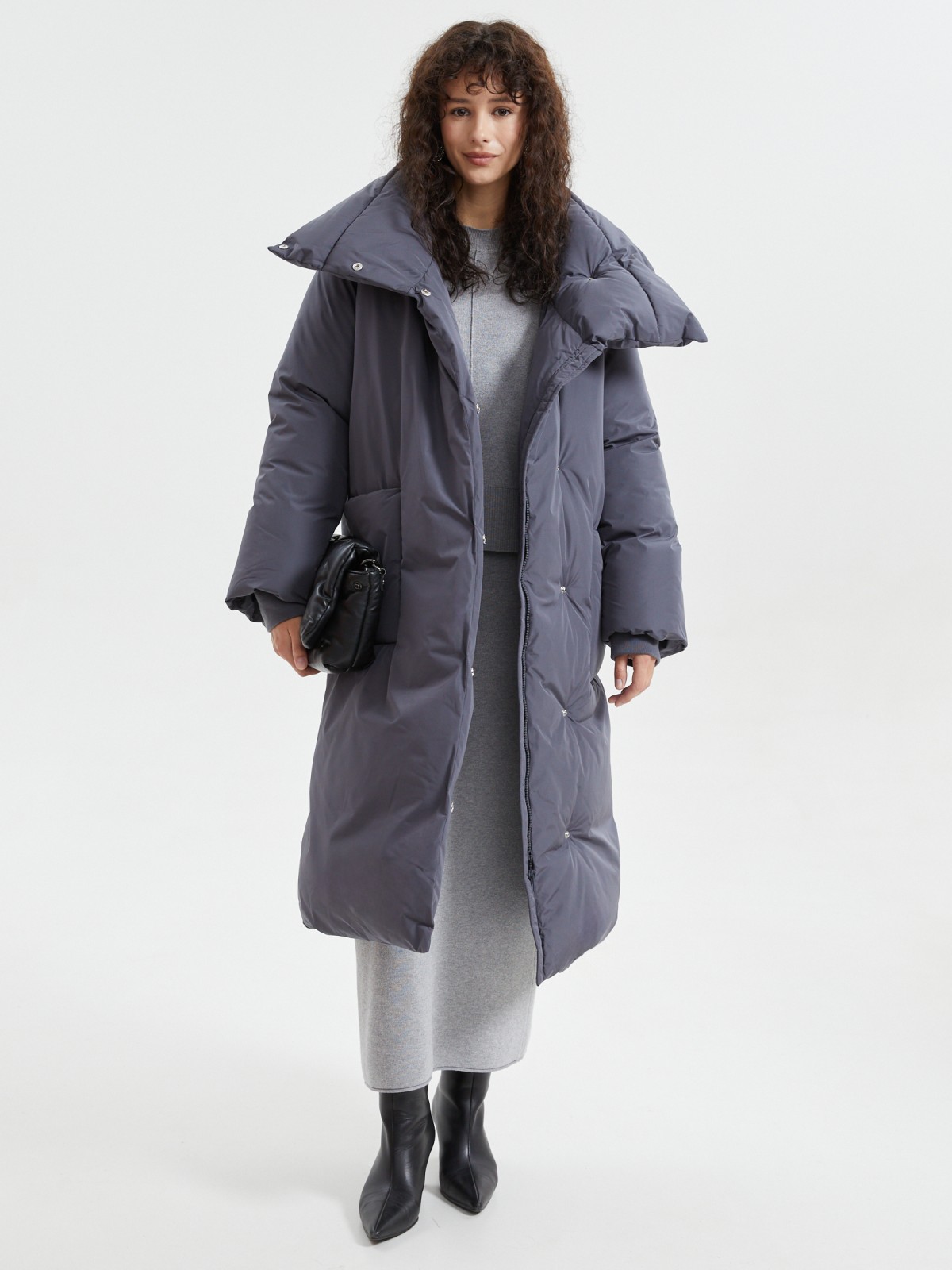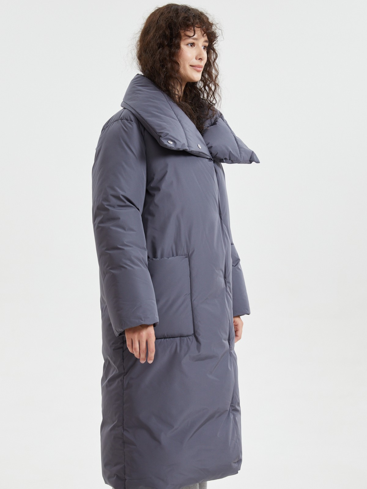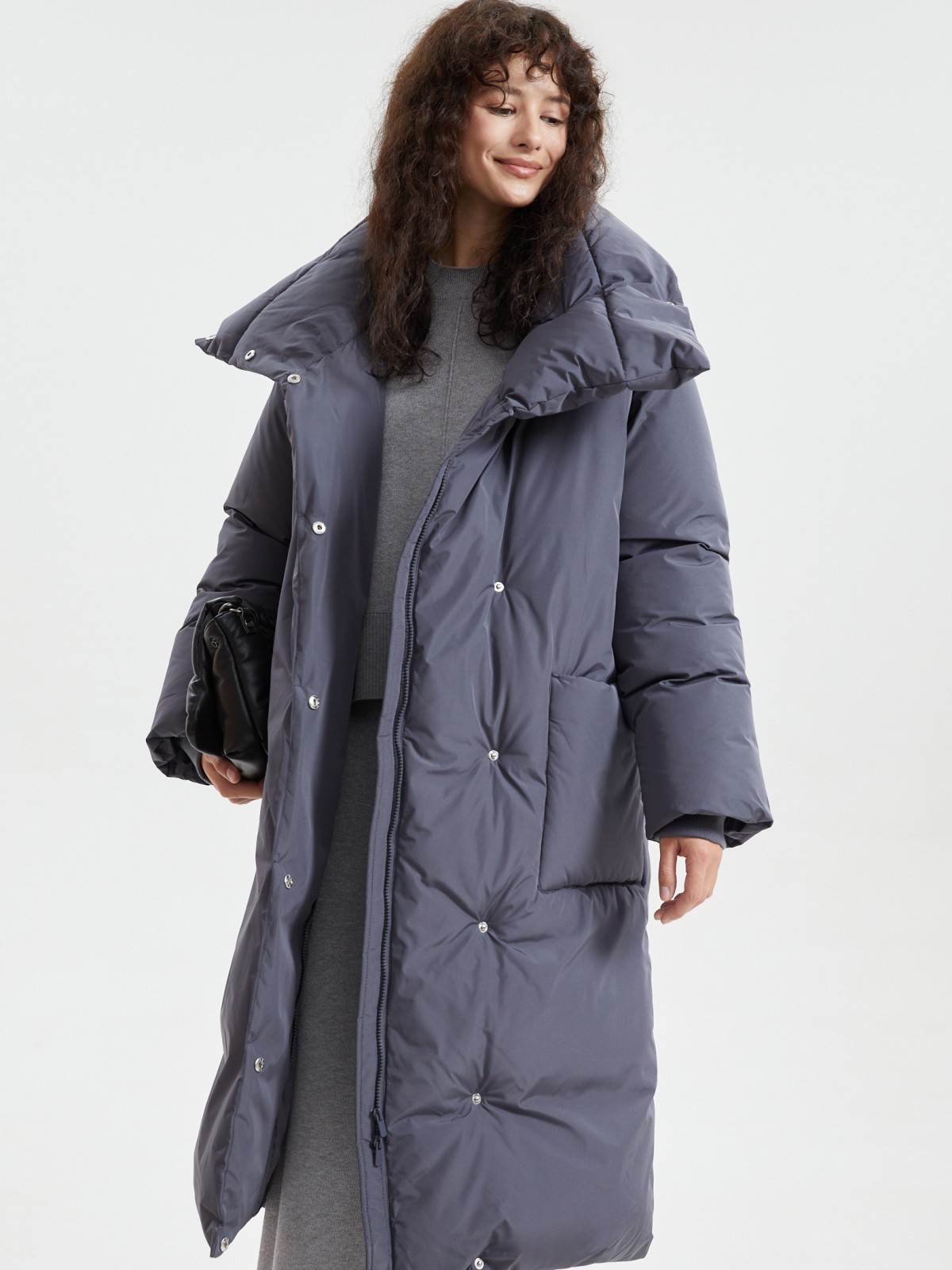 Длинное тёплое женское пальто с надёжным слоем утеплителя-синепуха будет максимально комфортным в носке в холодную погоду зимнего сезона. Модель куртки представлена в больших размерах.