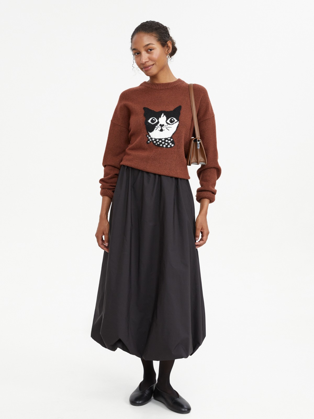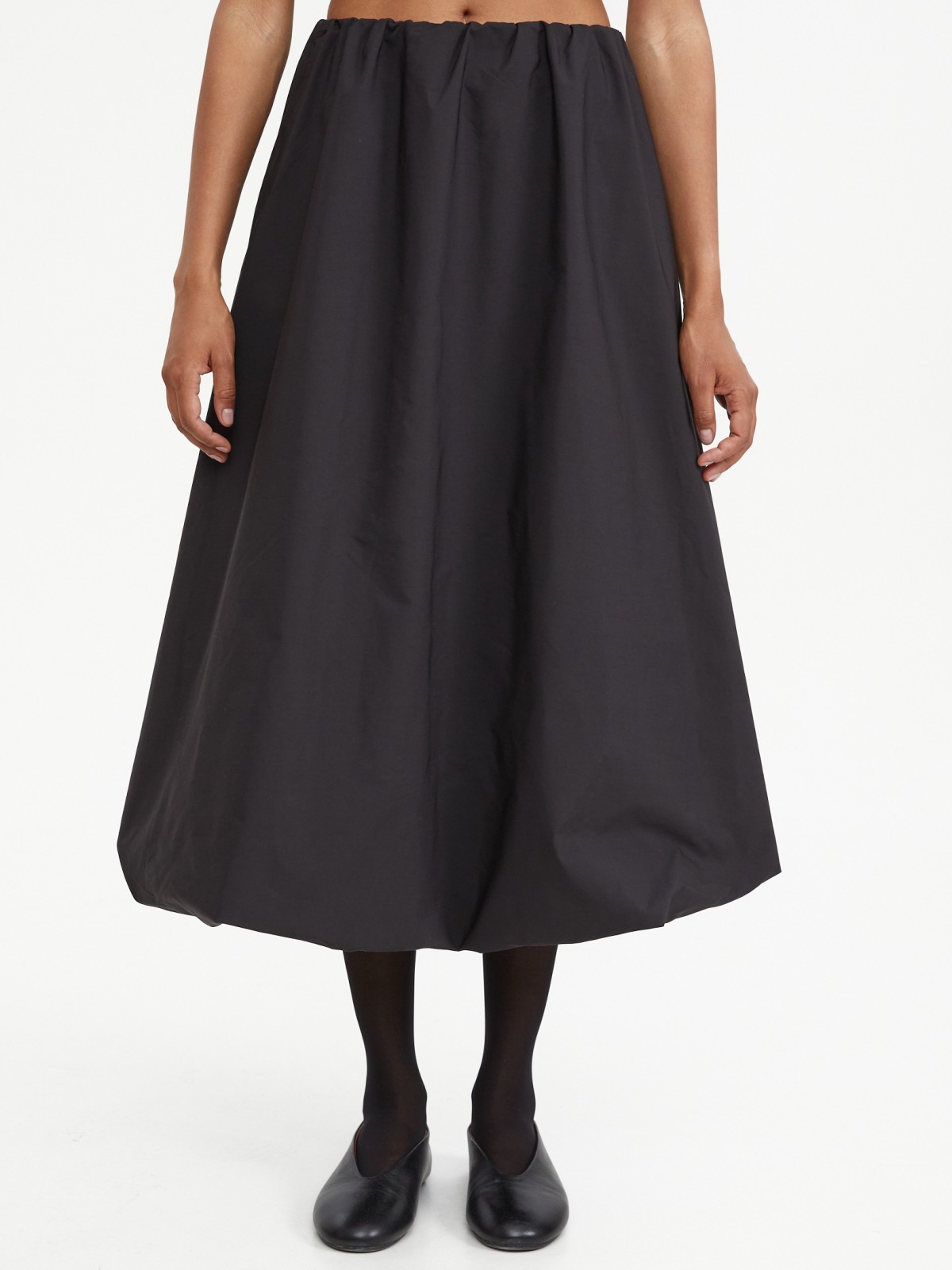 Чёрная модная женская юбка-баллон с мягкими женственными складками и подкладкой займёт почётное место в гардеробе современной модницы, и идеально подойдёт для комфортных кэжуал образов на прогулку или для встреч с подругами. Модель представлена в больших размерах.